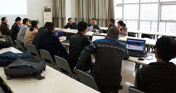 3月10日下午信息化工作主管副校长冷畅俭来到网络与教育技术中心检查 “信息综合服务平台”建设工作进展情况,并认真查看了网教中心编制的平台编码标准字典以及平台软件演示,与技术人员就平台的现阶段工作和后续工作进行了详细的讨论,对平台建设工作取得的进展以及研发人员严谨细致的工作态度和勤奋高效的工作给予了肯定,同时也指出了工作中的不足,要求平台工作组:一要高度重视主数据库建设,搭建好数据基础平台,尽快完成平台初始化数据的集成,并落实各类数据的维护部门和更新制度,持续补充完善平台数据,尽快安排专题会协调与两个教务系统的接口对接;二要重视用户体验,每个应用调试时要协调管理部门组织用户体验,及时修改尽早上线运行。