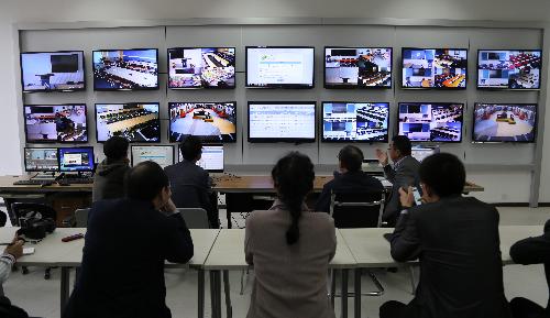 李崇光副校长一行在中心主任韩苏建、副主任张晓丽、郭向平、王西军、组织部副部长郑伟的陪同下查看了我中心的机房、高算中心、高清录播教室、多媒体教室集控中心的建设情况,认真听取了专业人员和中心负责人的工作汇报。